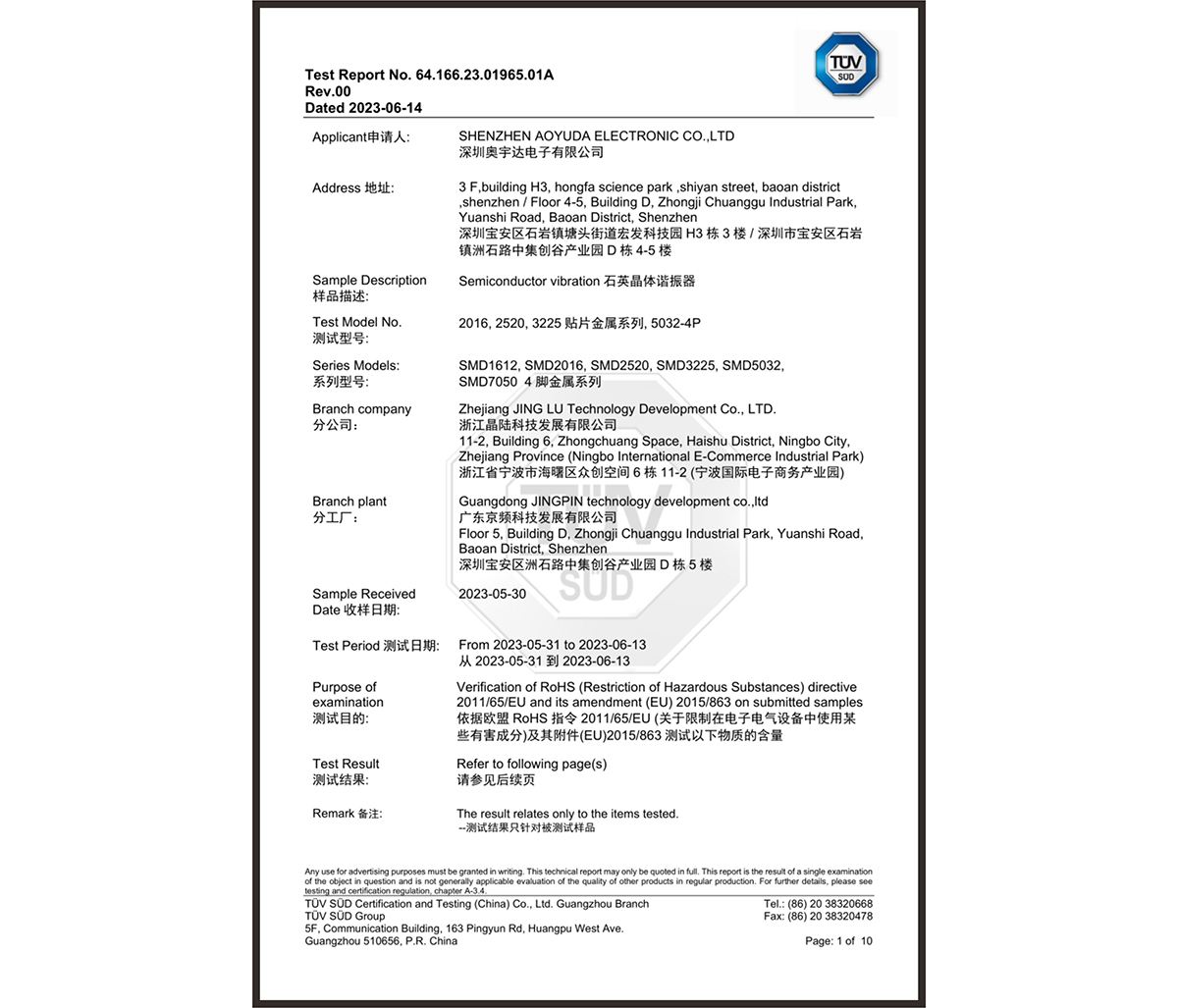 電話は0755-29826660 29376606/29826931 分の1に/ e_mail:ayd@ccta-crystal.com